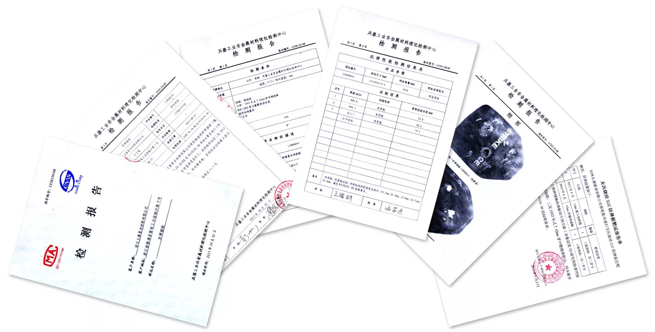 國家火炬計劃項目證書(項目名稱:大口徑碳化硅密封環編號:98D231D7000263)國家重點新產品證書(項目名稱:大口徑碳化硅密封環編號:98G041D7000053)液相燒結整體雙圓弧彈道鑲塊板本實用新型是一種大型碳化硅陶瓷防彈插板。板體為一整塊雙曲碳化硅陶瓷板,細密致密,周邊平滑過渡。板內外兩側的弧面半徑相等;- 尺寸為:
